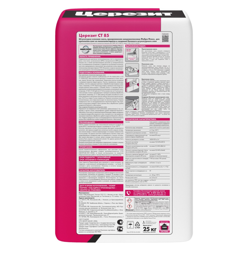 Описание товара: "Штукатурно-клеевая смесь Ceresit СТ 85 для пенополистирола (25 кг)"