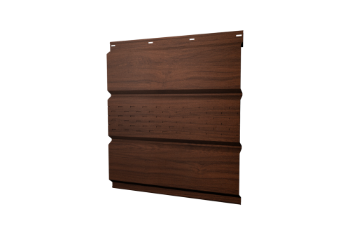 Описание товара: "Софит металлический центральная перфорация 0,45 Print Elite с пленкой Choco Wood TwinColor"